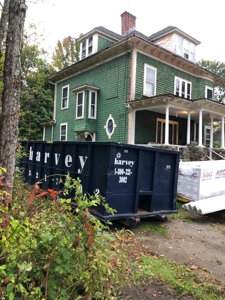 The dumpster and port-a-potty hav arrived along with the new gutters and siding.