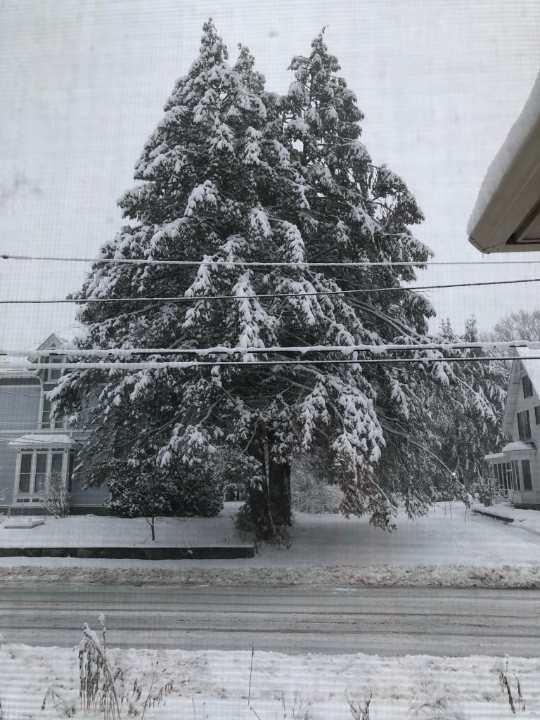 The branches are weighted down with the heavy white stuff. Many areas of our community lost power for almost twenty four hours and some areas just to our north have been without power now for two days.