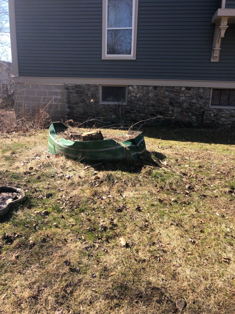 And the old garden beds need to be done away with and resettled into their new locations.