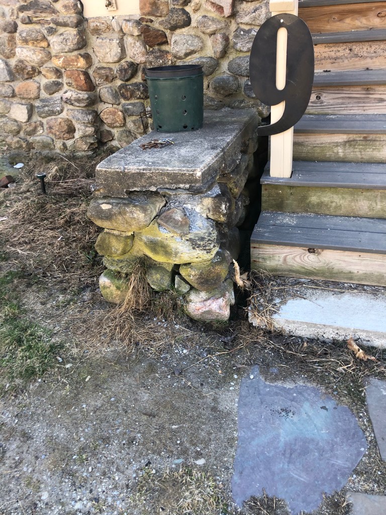 The old stone porch needs to be repurposed into stone walls and planters.