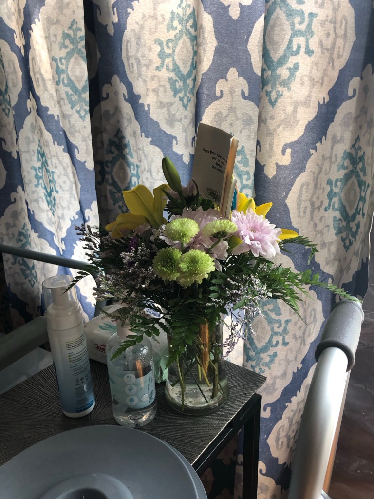 Yesterday was Mother’s Day. The flowers are from my sister Brenda. I got Mom chocolates. We got Wendy’s for lunch and then had naps. Naps are a Sunday necessity after church.
