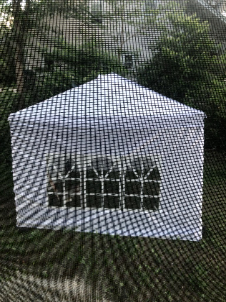 The screen tents came in this weekend. Melanie and James came to help me set one up.