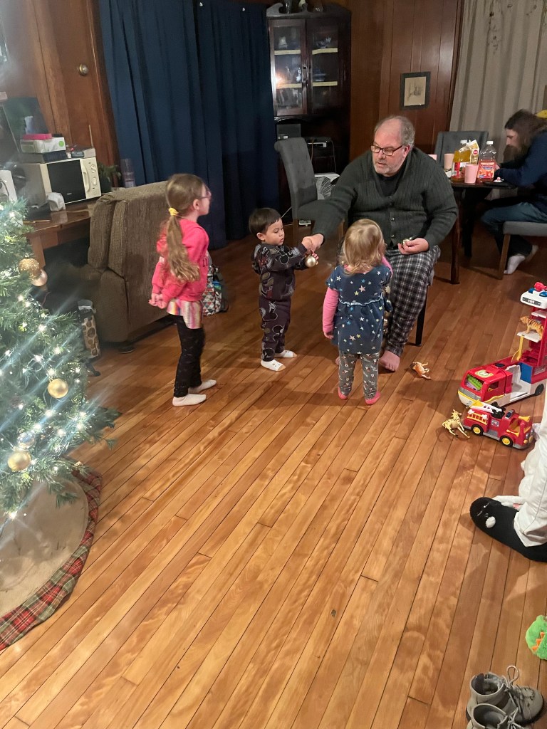 This year we bought lots of candy, put it in big bowls on the porch for the kids out trick-or-treating, and we decorated our Christmas tree. Amanda made our traditional Christmas tree, decorating food, beef, pinwheels, and veggie pizza. Joe and Kristine bought eggnog and three different kinds of juice and soda, I made an American chop Suey and we feasted. And we put decorations on the Christmas tree while greeting our neighbors as they came around.
