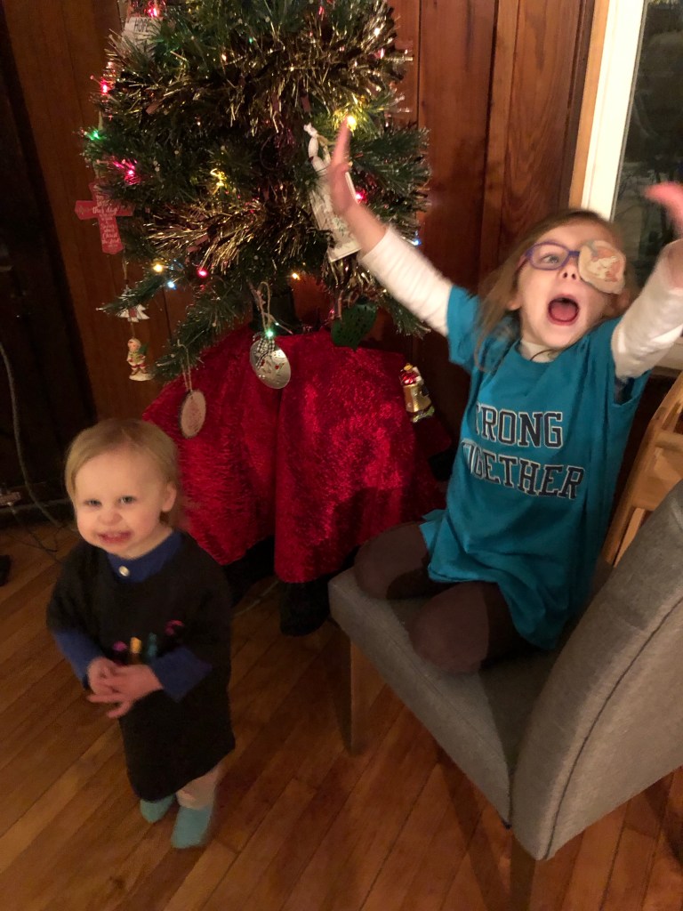 Last Tuesday two of my grandys came over to stay with me for a few hours. James, Melanie and Amanda all had ministry commitments at the church. That left Oz (that’s what the grandys call me) to sit with them for the evening. So they came to the Vicarage. The girls visited with Great Gramma, and we set up the children’s tree and then baked cookies.