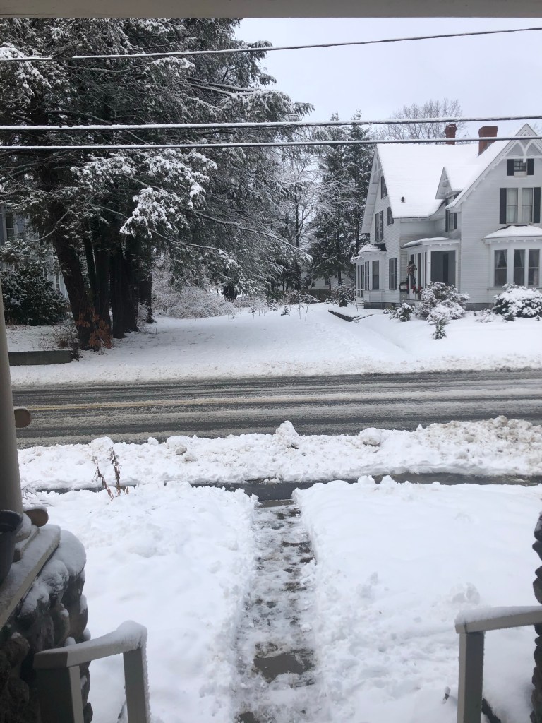 The first snow has fallen making the outside of the Vicarage look all Christmassy. It is heavy shoveling but perfect snowman snow.