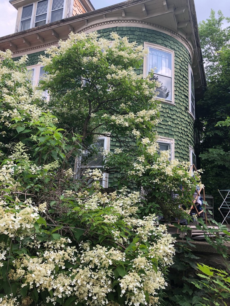 Not that there is nothing to do in the waiting. Life doesn’t wait for the waiting spaces and even in them there are deadlines to be met as we continue to walk by faith toward our upcoming renovation. Besides the day to day stuff, we have a lot of projects to do before the renovation itself begins. I still have to chop out the rest of the bushes around the stone porch. I am leaving the hundred year old antique hydrangea though. It’s so beautiful and if we can help it I really don’t want to lose it.