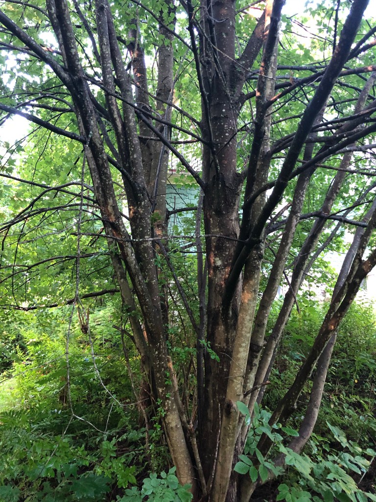 On windy nights the branches of one of the maples actually scratch against my window like the scritching of nails in a horror film.