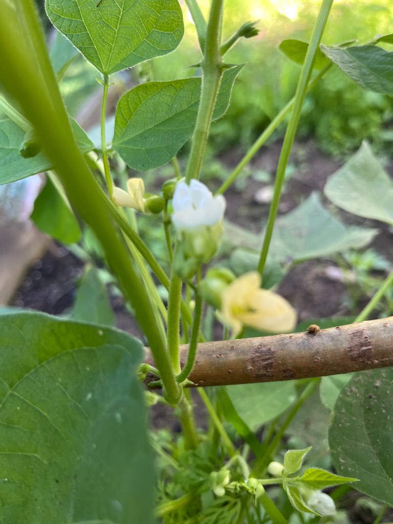 Eggplant, tomatoes and green beans from the forest garden.African daisies in the front garden